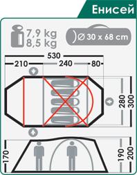 Масса палатки, кг (мин/макс): 7,9 / 8,5