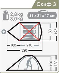 Масса палатки, кг (мин/макс): 2,8 / 3,0