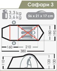 Масса палатки, кг (мин/макс): 3,3 / 3,6