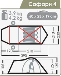 Масса палатки, кг (мин/макс): 3,9 / 4,2