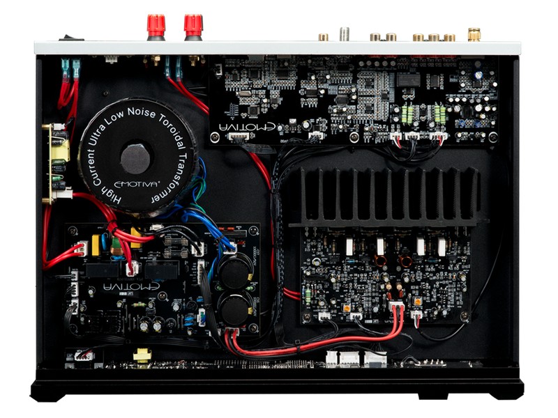 Emotiva BasX TA-100 сочетает функции и возможности стереофонического предусилителя ультимативного качества, высокопроизводительного FM-тюнера и высококачественного усилителя мощности — все в одном удобном корпусе. Секция предусилителя включает аналоговые входы линейного уровня для проигрывателя компакт-дисков или линейного источника, встроенный USB-ЦАП с большим количеством цифровых входов для компьютера и других источников цифрового стереозвука, высококачественный предусилитель-корректор проигрывателя виниловых дисков, который поддерживает картриджи как с подвижным магнитом, так и с подвижной катушкой, а также технические средства для дополнительного приемника высококачественного аудиосигнала пл протоколу AptX Bluetooth. Тюнер предлагает полное цифровое управление и 50 предустановленных станций. Полностью дискретная секция инвертирующего усилителя класса A/B обеспечивает достаточную чистую мощность для работы двух высококачественных стереофонических акустических систем на требуемом уровне громкости; TA-100 имеет также линейные выходы для активного сабвуфера или для подключения внешнего усилителя мощности. Управление TA-100 производится с помощью простых элементов на лицевой панели или с помощью входящего в комплект инфракрасного пульта дистанционного управления. Интуитивно понятная система меню упрощает настройку и эксплуатацию TA-100, а крупный и легко читаемый ВЛД-дисплей на лицевой панели устройства в постоянном режиме показывает, что именно происходит в данный момент времени.