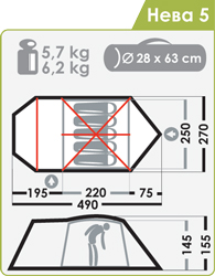 Масса палатки, кг (мин/макс): 5,7 / 6,2