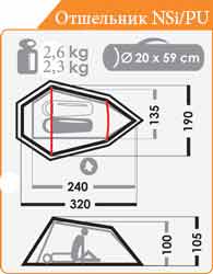 Масса палатки, кг (мин/макс): 2,3 /2,6