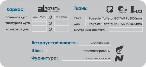 Малый вес, компактность. Проста в установке. Система купольной вентиляции.Защитные планки "молний" тента. Антимоскитная сетка. Герметичное дно. Боковые и подвесной карманы-полки. Петля для фонарика на куполе палатки.