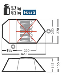 Габаритные размеры тента, см (l x b x h): 490 x 270 x 155