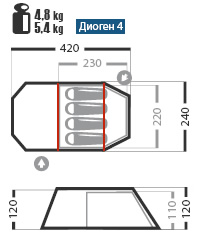 Масса палатки, кг (мин/макс): 4,8 / 5,4