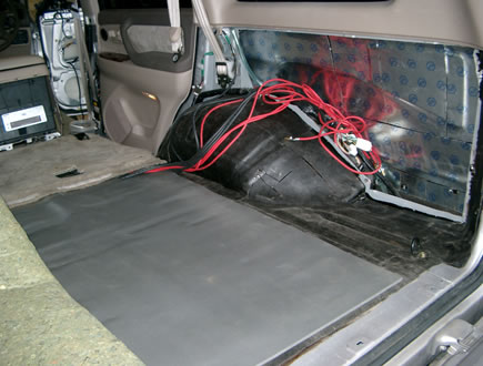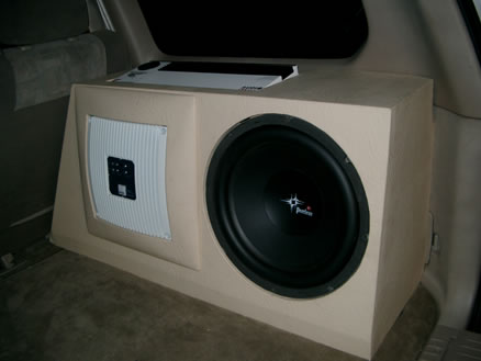 Сотый "Крузер", DVD-проигрыватель, подключённый к штатному головному устройству с телевизором, установка в штатные места, единственное исключение - стелс в правом крыле... В данном случае в нём хорошо ужились два мощных усилителя и 15" сабвуфер на динамике Peerless Resolution 15.