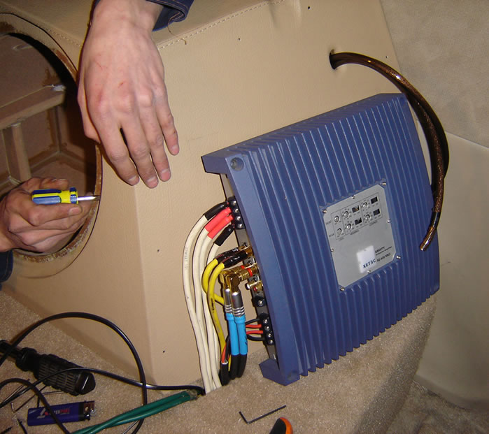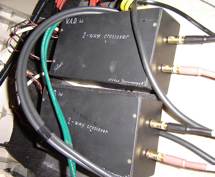 На фронт (два канала на твитеры и СЧ-динамики, через пассивный фильтр изготовленный в нашей студии непосредственно под эти динамики, два канала на мидбасы) XETEC 4G-600, вещь ставшая уже раритетной.